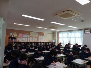 本日は朝から「元気ですか」運動の取組週間で、保健委員が寒い中、登校する生徒たちに呼びかけてくれています。私も一緒に「元気ですか?」と大きな声で、生徒に声を掛け「特に3年生は体調に気をつけましょう!」と伝えました。生徒を励ませば、私も元気になります!昼間は多少暖かくなり、青空のもと3年生がソフトボールのバッティング練習でしょうか?1年生は単語テストをおこなっています。頑張ってください!