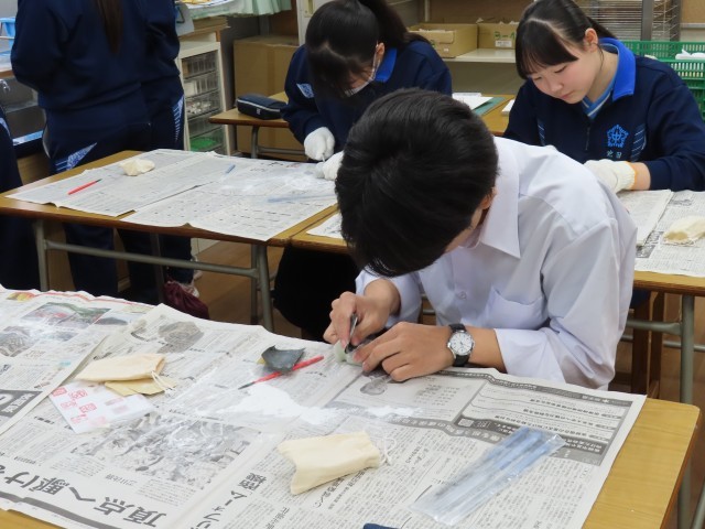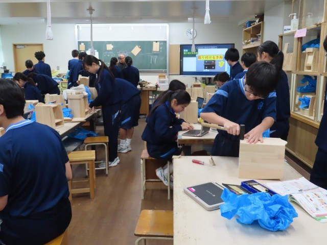 本日、各授業を参観しました。1年生では、伊豆大島や前回は小笠原諸島の話をしていました。新規採用者の研修で大島に行ったことがあります。また、小笠原諸島には2校目に3年間務めていました。とても親しみのある島です。山の形により、噴火の様子が分かり、火山灰が違うという実験でした。映像も分かりやすかったです。3年生の美術では、印鑑作り。そろそろ大詰めです。1年生は技術でCD棚の様な、小物の棚を作っていました。完成が楽しみですね!