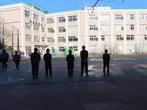 本日から、二十四節季の第二節季である雨水です。2月19日から3月4日頃をさします。雪が雨に変わり、氷が解けて水になる、寒さが和らぎ春へと向かう時期のことです。さて、本日挨拶運動に向かうと、めちゃめちゃ寒いです。晴れていますが、風の冷たいこと!!生活委員がそのような中、挨拶に立ってくれています。後光が差しているようでしたので、写真を撮りました。3年生の廊下に「あと何日」が、きれいに掲示されています。着実に減っていて、少し寂しくなりますね。快晴のもと、3年生が元気にアルティメットで歓声をあげていました!