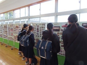 本日学年末考査が終了しました。生徒のみなさん、お疲れ様です。本日はゆっくり身体を休めてください。廊下から見える寛永寺の境内の梅が見頃です。ピンク色にきれいに咲いています。考査が終了した後の給食前のほっとした一時でしょうか。雰囲気が伝わってきます。放課後、校長室前の写真掲示板を生徒が見ていました。今年度も2月と3月の掲示板のみになります。楽しみにしていてください!