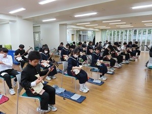 朝の挨拶運動をしました。振り返ると、いつも点灯している灯りが点いていない階があります。「あー、3年生卒業したんだったなあ」と実感しました。寂しいですね。私も経験ありますが、きっと学年の先生方も暫く心の中がぽっかりと穴が空いた時間を過ごすと思います。昨日も「最後に過ごした日々が、毎日ふわふわした感じでした」と学年主任の先生が話されましたが、その「ふわふわ」感、よく分かります💧。朝練の生徒が開門をまっています。頑張っていますね!1年生は三味線の授業!「べべんっ」と音だししていました。