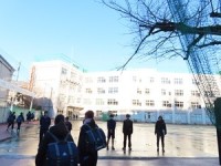 今朝は、ALTのラブさんが挨拶運動をしてくださいました。ありがとうございます(写真左)。昨日まで、あれほど熱く湿度が高かったのに、今日は一転、随分涼しくなり、ジャージの上を着てくる生徒を多く見かけました。体育もプールはそろそろ終わりで校庭での種目に変わります(写真右)。皆さん、体調管理には十分気を付けてくださいね。