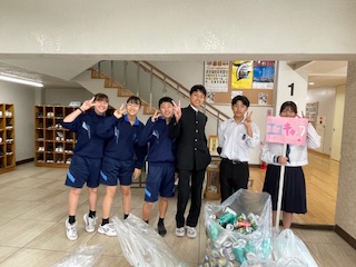 本日は、新生徒会役員の皆さんが空き缶・キャップ回収をしています。今後ともよろしくお願いします。4時間目は3年生がクラス合唱の練習を体育館で順番におこないました。どの曲も懐かしいもので、聞いていて涙が溢れました!6時間目は全校合唱の練習です。3年生が中に呼び入れてくれました。感謝です!