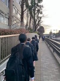 1月15日(木) 生徒たちが、班行動を終えて学校に帰ってきました。 1階会議室で、班ごとに帰校報告をして、下校になります。 すべての班が午後3時45分に報告完了し、下校しました。 事故や怪我なく終える...