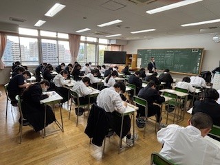 特に、英語科のテストでは放送による聞き取り問題が出題され、生徒たちは放送で流れる英文を集中して聞き取っていました。