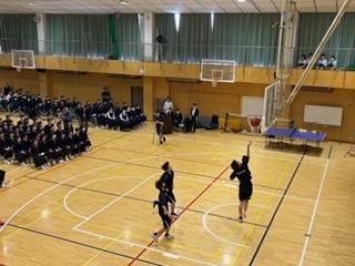 その後、部活動紹介があり、各部の代表生徒たちが、活動内容を説明したり、練習の一部を実演したりしました。