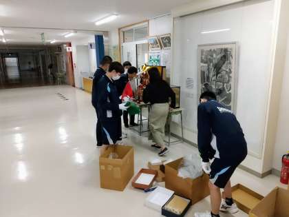 生徒会本部の皆さんが、生徒会室にしまっておいた「五月人形」を生徒会担当の先生と一緒に飾ってくれました。