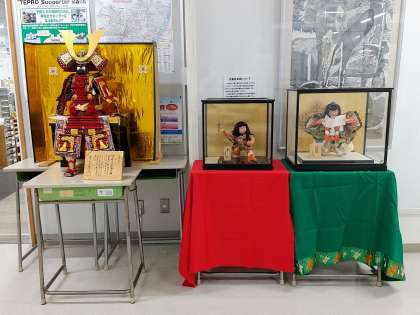 御覧のとおり、忍岡中学校には立派な「鎧飾り」などがあります。3月には「ひな人形」を飾ってくれました。