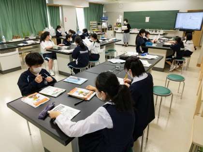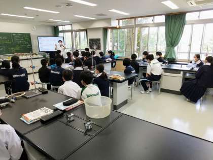 2階、理科室です。1年生の皆さんですね。