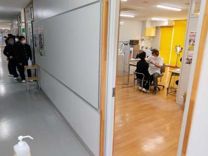いましたね。順番に並んで校医さんに検診をしてもらいます。終わった人から、消毒をして理科室に戻ります。