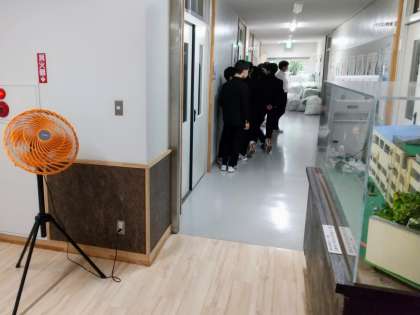 保健室前です。2年生男子の皆さんですね。「歯科検診」が始まったようですね。