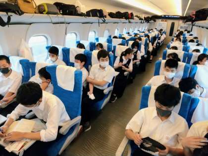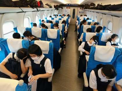 他の中学校とは、空席の座席が設定されているのですが、かなり余裕があるので、許可を得て13号車に座席がある1組の皆さんも、14号車に移動することになりますした。