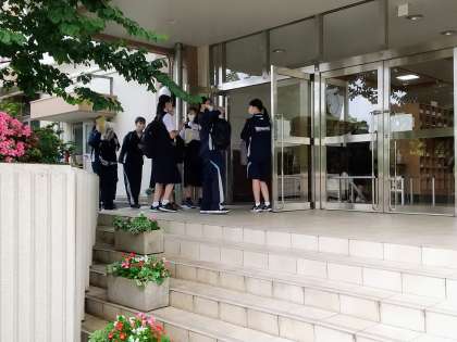 早く来ている先生が、各教室の窓開け、エアコンなどの準備をしてくれていたので、ほぼ確認だけで済みました。生徒の皆さんを出迎えるため、正門へ。