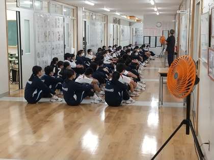 「コロナ禍での修学旅行となったが、多くの方の努力のお陰で、無事に終えることができたこと」「生徒一人一人が自覚をして、しっかりと取り組むことができたこと」「今回の成功を次に繋げていくことが大切であること」などの話がありました。