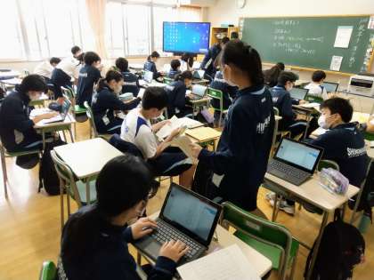 こちらの教室では、タブレット端末を使っての「国語」の授業です。