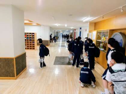 風も強かったので、早く登校してきた生徒の皆さんには、7:50のチャイムまで1回廊下に上がって待っていてもらいました。