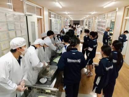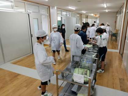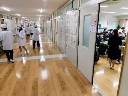 教室の中では、学級担任の先生、教育実習の先生が食缶を持って回っています。もうちょっと食べられるという人がいるので、こちらのクラスは「残菜ゼロ」になりそうです。