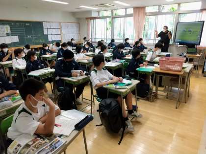 こちらは2階、3年生の教室です。「社会」の授業ですね。