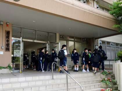こちらは1年生の皆さんです。今日は3・4時間目に「学年練習」がありますね。