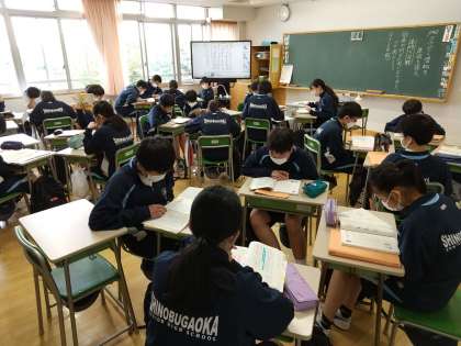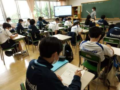 こちらの教室では「国語」。教材は「クマゼミ増加の原因を探る」です。
