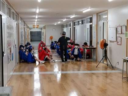 「開会式」までの時間を使って、各クラス、最終ミーティングです。