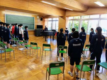 指揮者が前に出て、合唱コンクールでも披露した「若人の歌」を歌っていました。