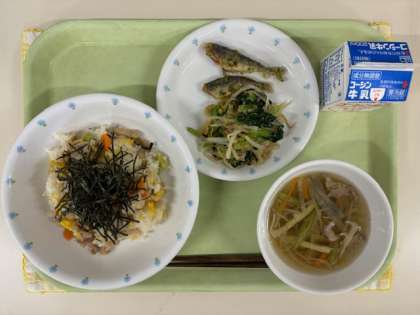 9月9日(月) 公開日 2024/09/09 更新日 2024/09/09 給食の献立 今日の献立 ※重陽の節句にちなんだメニューです ●牛乳 ●菊花ちらし寿司 ●豆あじの磯辺揚げ ●糸寒天のごまみそ和え ●沢煮椀