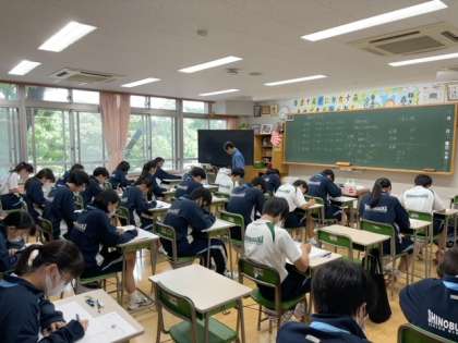 夏休みまでの学習の成果を試す機会です。今日のテストでの手ごたえをもとに今後の学習をどのように進めていくかを考えてほしいと思います。