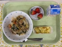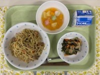 ●牛乳●ソース焼きそば●大根とわかめのサラダ●フルーツ白玉