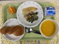 ●牛乳●黒砂糖パン●魚のムニエル●ウインナーとほうれん草のソテー●パンプキンポタ...