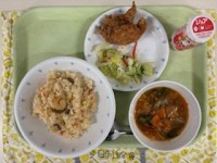 【2学期 給食最終日】●ジョア(いちご)●エビピラフ●フライドチキン●マカロニサ...