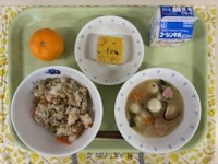 ●牛乳●昆布とツナのごはん●えび入り千草焼き●特製お雑煮●みかん