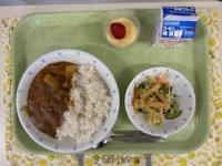 ●牛乳●カレーライス●パリパリサラダ●カスタードプリン●ミニかつ(3年生のみ)