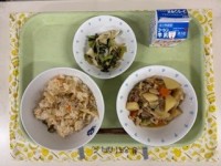 ●牛乳●たけのこごはん●肉じゃが●小松菜のごま味噌和え