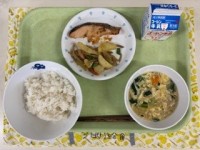 ●牛乳●麦入りごはん●鮭の薬味焼き●五目きんぴら●かきたま汁