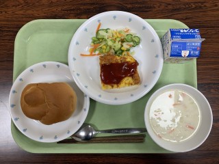 ミルクパン・スパニッシュオムレツ・オニオンサラダ・ホワイトチャウダー