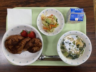 ココア揚げパン・肉団子のスープ煮・野菜ソテー・いちご