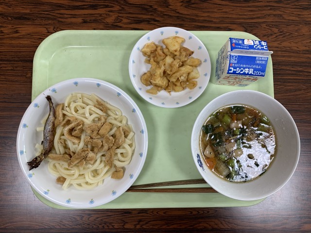 きつねうどん・焼きししゃも・みそポテト