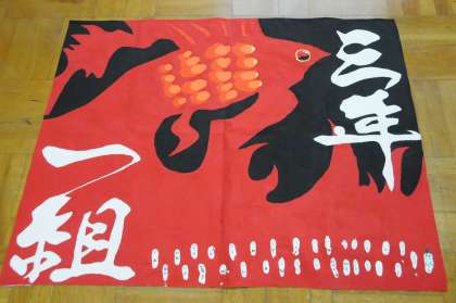 本日は中間考査2日目です。本日の教科は、英語と社会です。教室をまわると、どの生徒も真剣に取り組んでいました。本日の写真は、3年生のクラス旗の紹介で、1組と2組です。