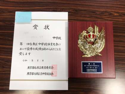 週末ごとに様々な部活動でその成果を発揮しています。今回は6月12日(月)の朝礼で表彰されましたバレーボール部と陸上競技部を紹介します。