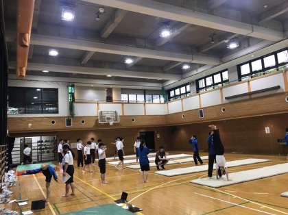 技術をさらに高めるために、生徒同士が互いにサポートしながら取り組んでいました。タブレットで撮影して振り返りを行うなど、実技試験に向けて練習を工夫していました。