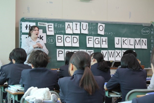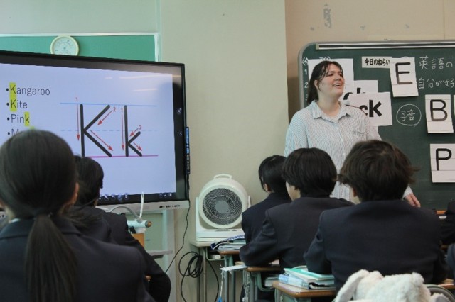 3年生の英語の授業でEmily先生にフォニックスの練習をしていただきました。英語の発音とスペリングをリンクさせて学習をするメソッドです。英語圏の子どもが読み書きを学ぶ際に用いられる方法で、中学校1年時に一度学習をしたフォニックスを改めて復習することで、2年間の英語学習で得た知識と結び付けて学び直すことができました。また、英語らしい発音を身に付けるために、発音の練習も行いました。実践的な英語力の育成に力を入れています。