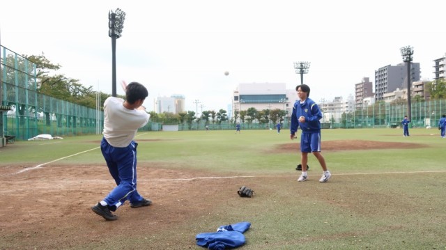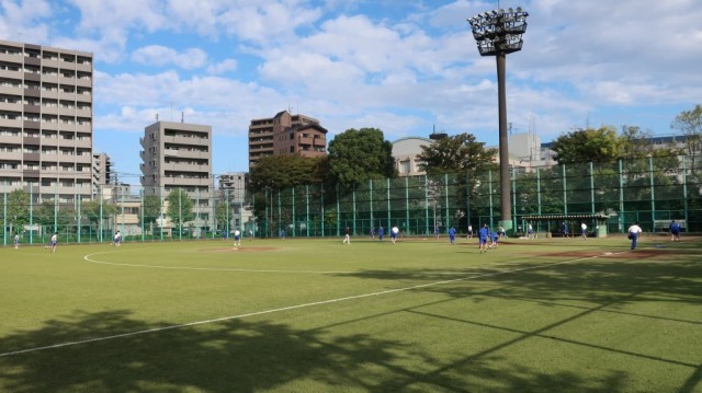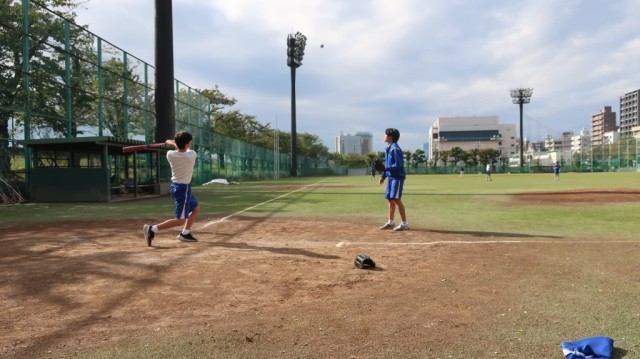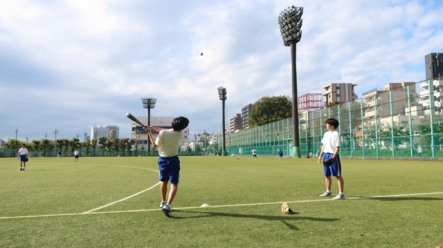 3年生の体育の授業はソフトボールで、リバーサイドの野球場を借りて行いました。
