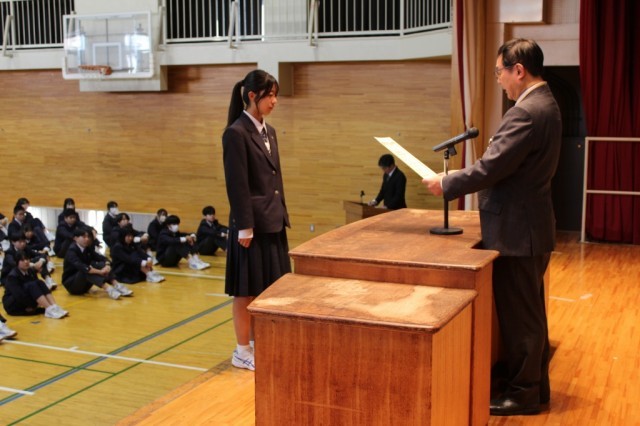 さて、部活動ではバドミントン部が男女ともに団体戦と個人戦で入賞、そして陸上部の女子生徒が都大会で入賞し表彰されました。