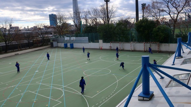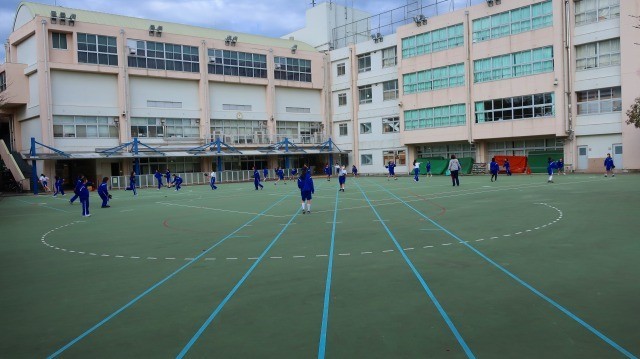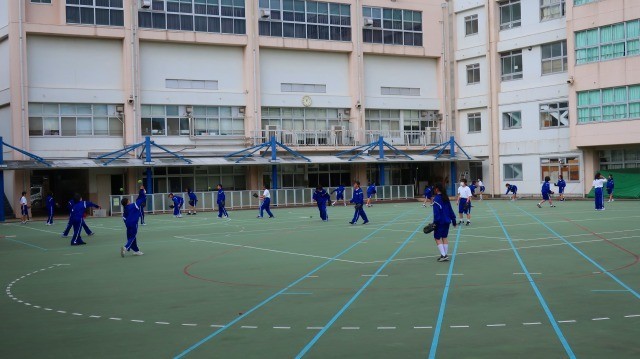 これまでは、リバーサイドの野球場で行われた様子を紹介しましたが、今日は本校の校庭で行う様子です。
