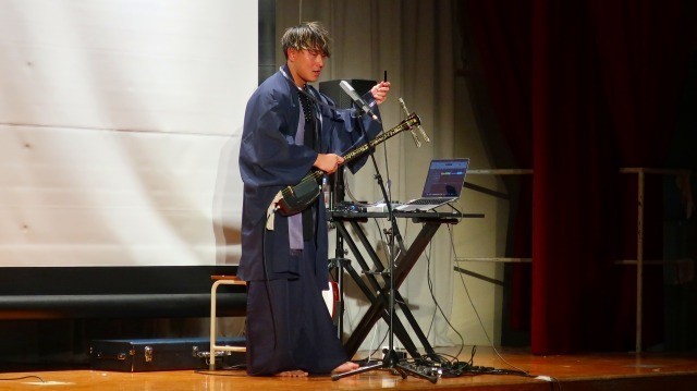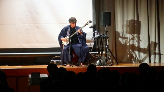 津軽三味線の演奏では、伝統的な「津軽よされ節」や「津軽じょんがら節」だけでなく、エレキ三味線を用いたロック調の曲を演奏してくださいました。