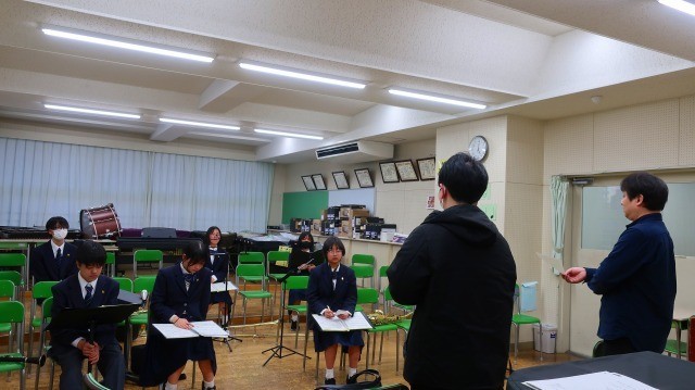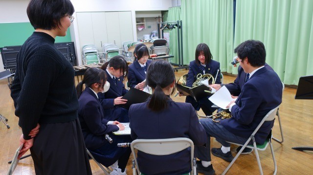 本日、吹奏楽部はアンサンブルの発表を行い、講師の先生に講評をいただいていました。