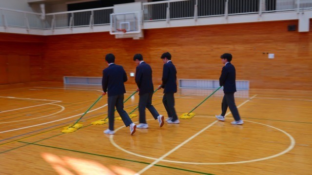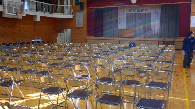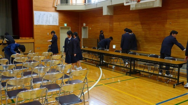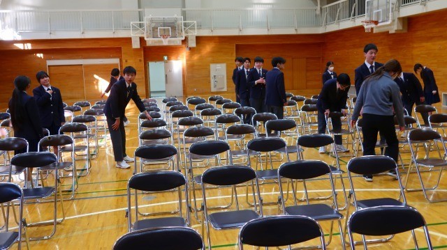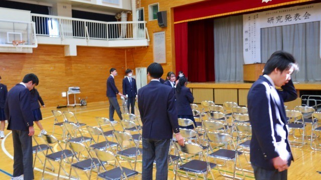 明日、本校は人権尊重教育推進校としての研究発表があり、放課後に3年生が会場準備を行ってくれました。