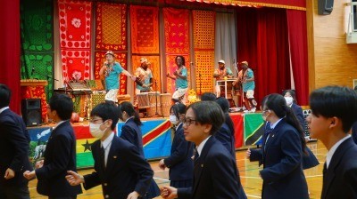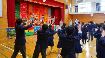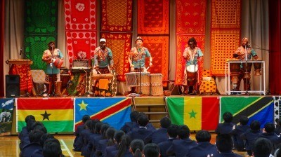 アフリカの音楽やダンス、各国の民族楽器の演奏など、普段触れる機会の少ない国の文化を体験することで異文化理解や国際感覚を養うことを目的して実施しました。