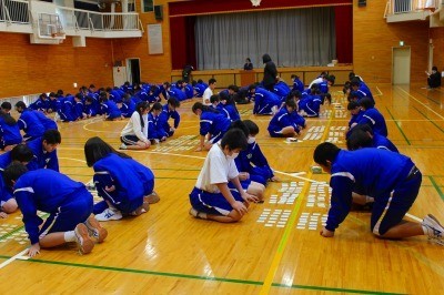 卒業式を1週間後に控え、3年生は式練習(証書授与や校歌等の歌の練習)に励んでいます。